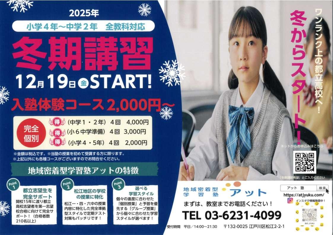 冬期講習は高校受験に向けてのラストスパートとなるため、志望高校合格を目指して、徹底した過去問演習を行います。